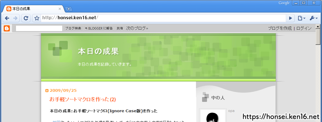 このブログ、これまでは http://honsei.blogspot.com/ のURLで公開していたのだけど、このたびウチのDNSサーバに設定を追加して、数日前から http://honsei.ken16.net/ のURLで公開されています。