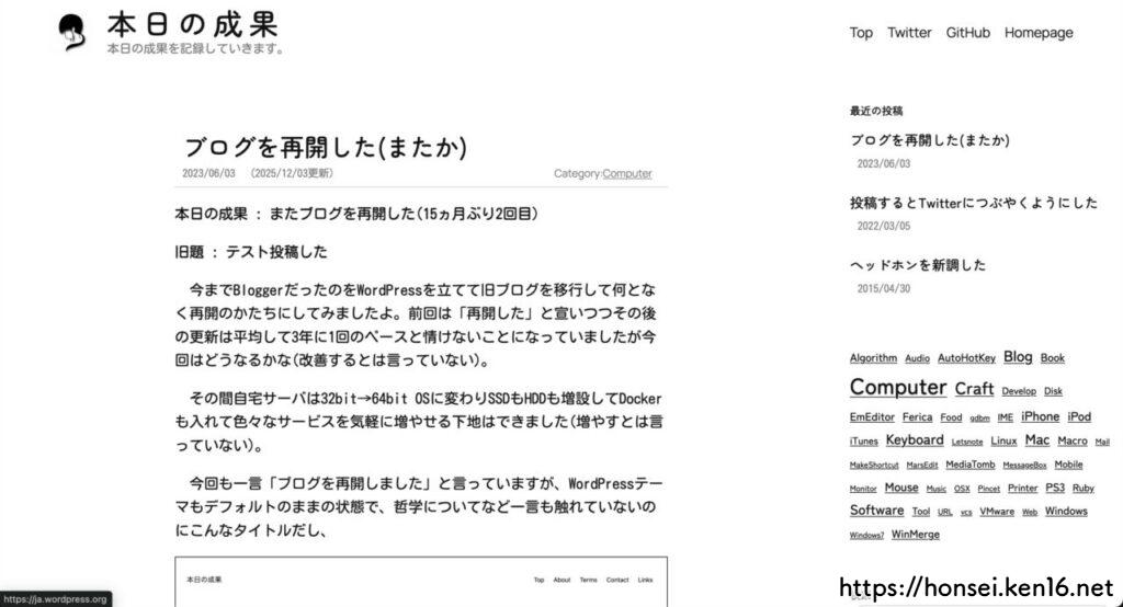 本日の成果 : WordPressのテーマを修正した